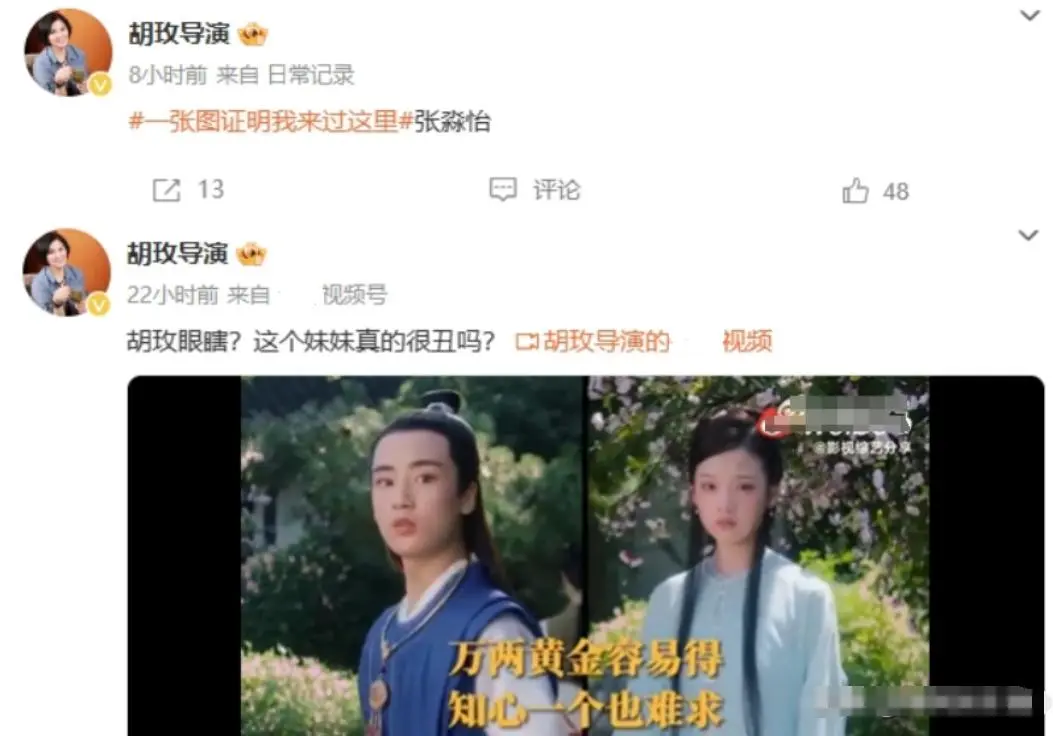 随后在舆论的愈演愈烈之下,胡玫导演又开始转发视频,直接问这个妹妹真的很丑吗?