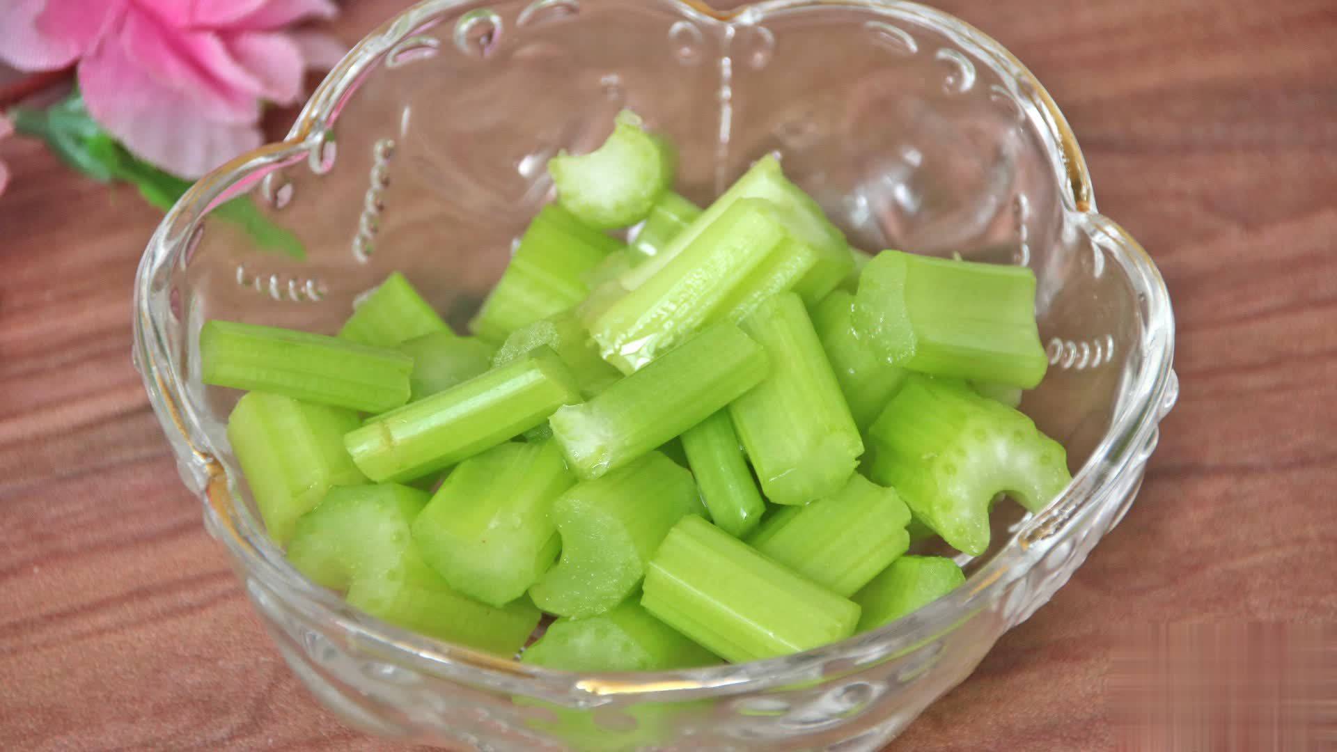第五步:芹菜2根,洗净后也切成小段;