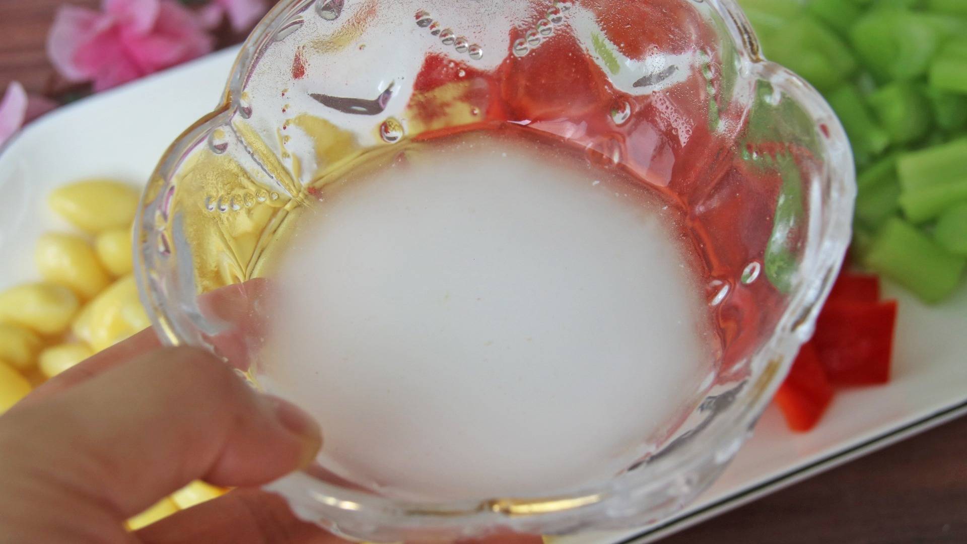 第七步:一勺淀粉兑3勺清水,调制成淀粉水待用;